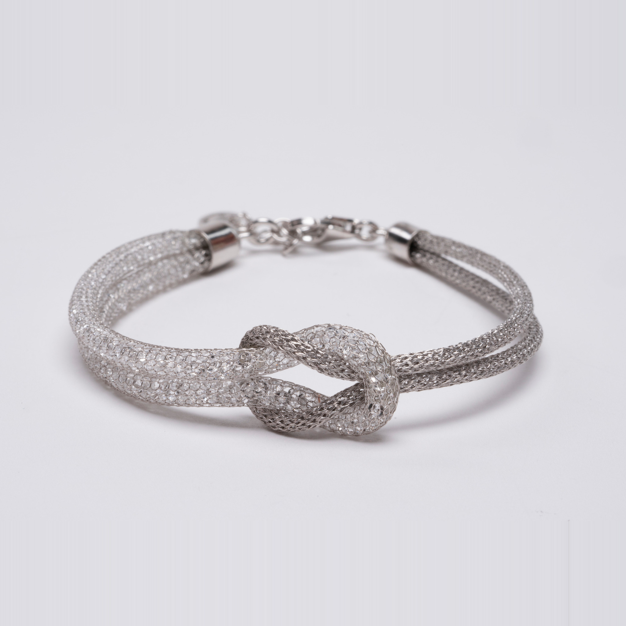 Realizzato a mano crea un elegante effetto cristalli e tessuto alternato riflette la luce con delicatezza e luminosità. Il suo design raffinato e leggero lo rende un accessorio versatile: perfetto per essere indossato ogni giorno per un tocco di stile discreto, ma anche ideale per occasioni speciali dove si desidera un look sofisticato. Indossato da solo sprigiona tutta la sua eleganza, ma può essere facilmente abbinato ad altri gioielli per creare combinazioni uniche e di carattere. Dettagli principali: