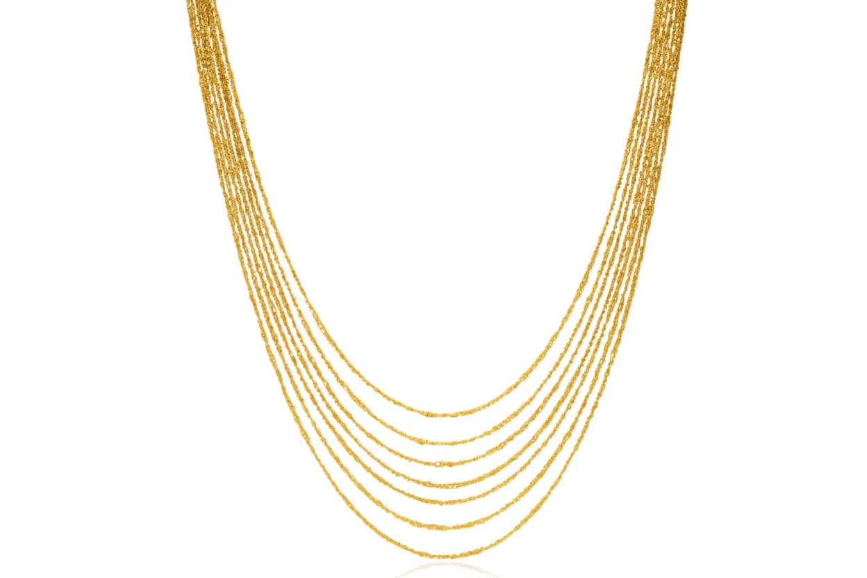 Un gioiello che unisce artigianalità e luminosità naturale. La collana multifilo argento 925 è perfetta per chi cerca eleganza discreta e qualità artigianale in un accessorio raffinato.
