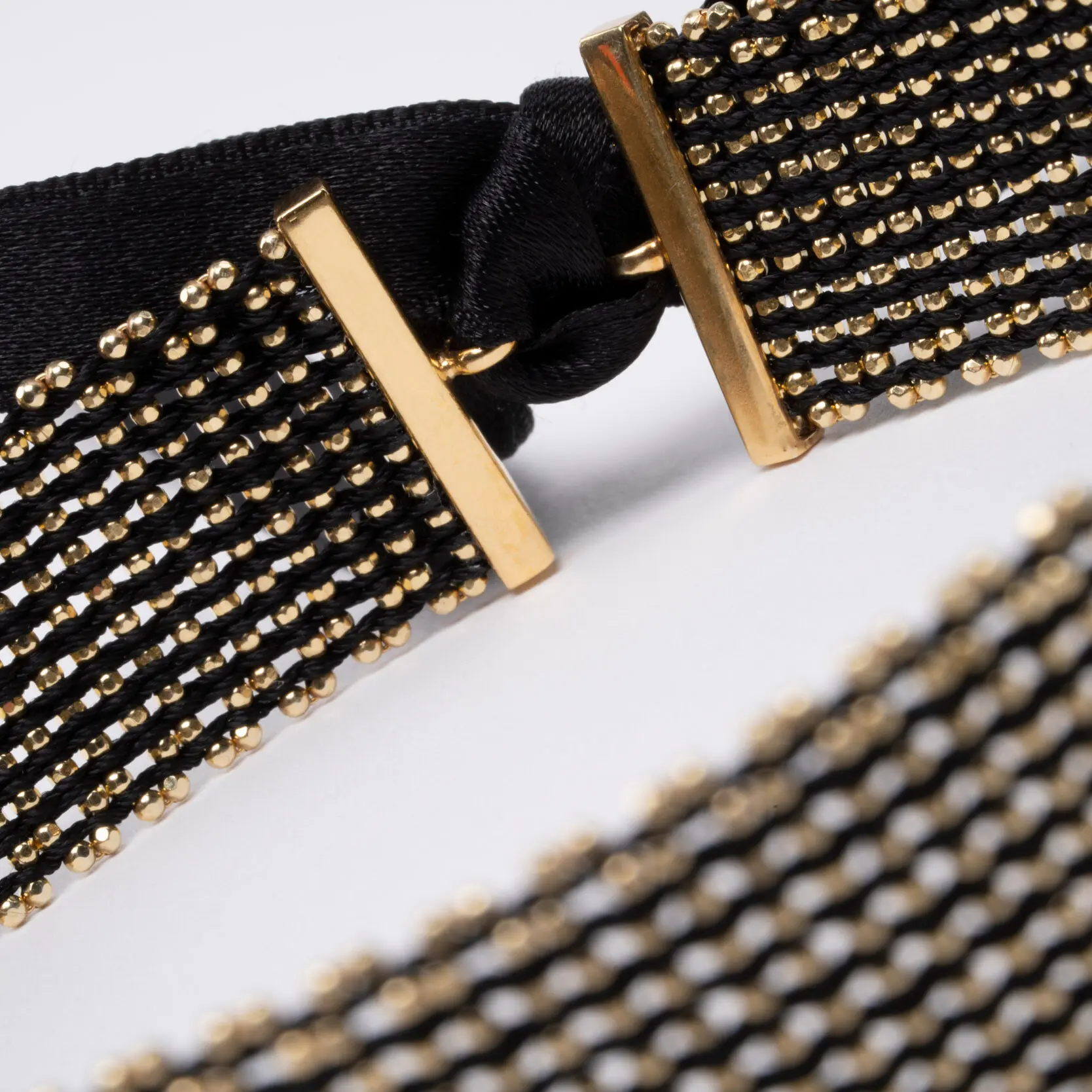 Un gioiello che racconta l’incontro tra tradizione e modernità. La collana telaio Aracne in Argento 925 intreccia con telaio una catena di argento e filo di cotone, per un risultato artigianale sofisticato e ricco di personalità.