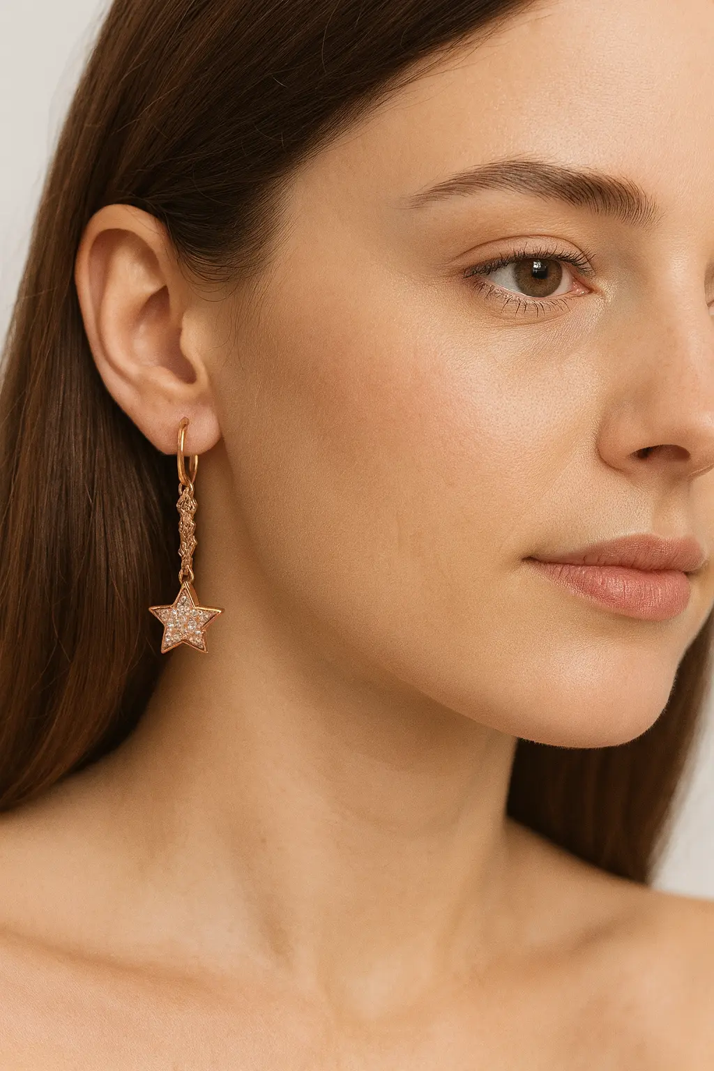 L’orecchino stella argento 925 con zirconi 925 è realizzato con una catena sottile in argento 925 e un pendente a forma di cuore decorato con zirconi scintillanti, che conferisce luminosità e un tocco romantico al gioiello.