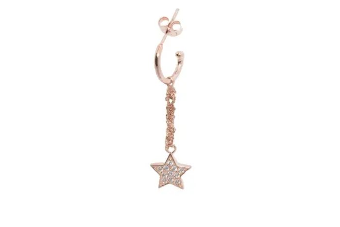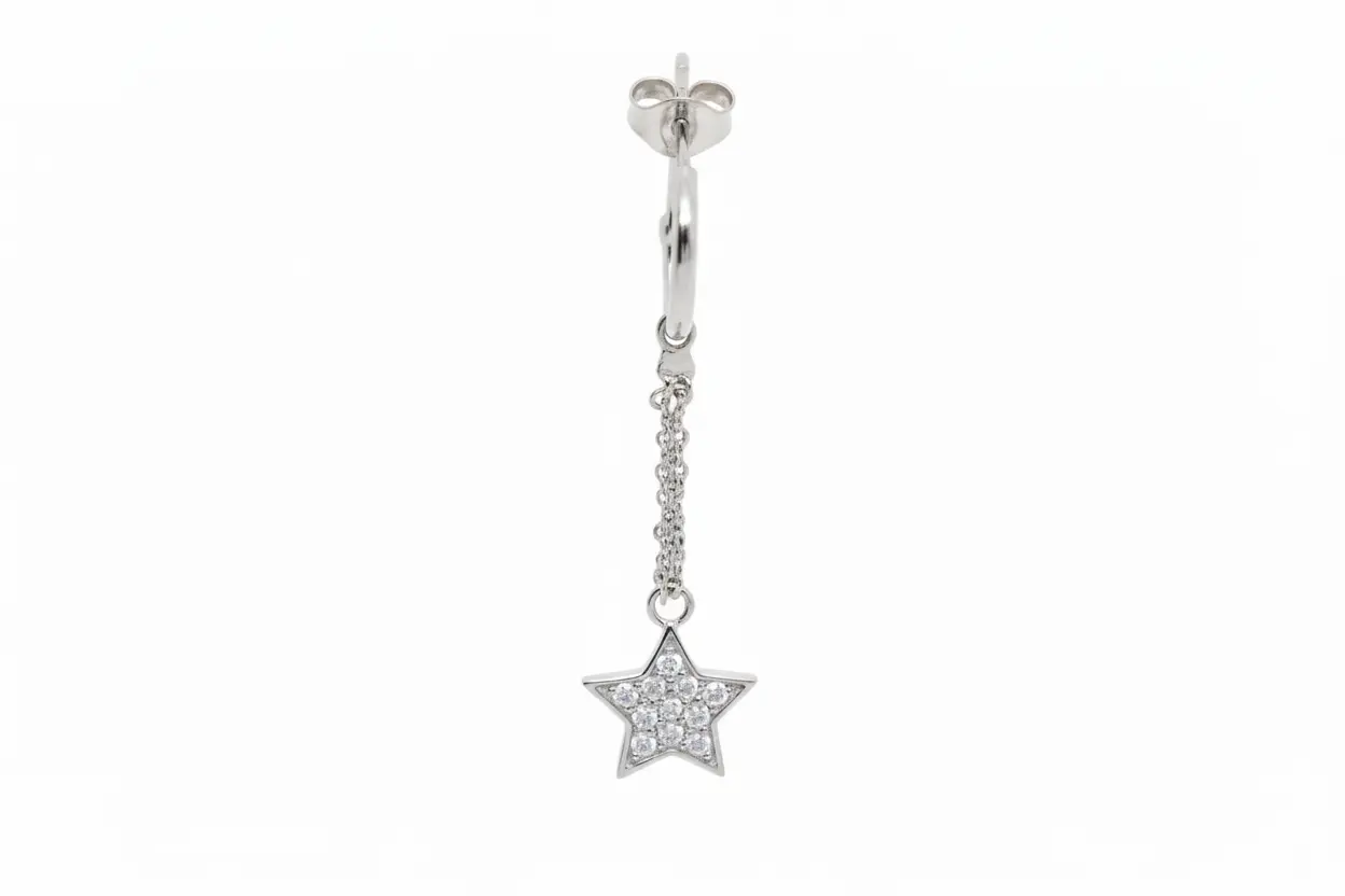 L’ orecchino stella argento 925 con zirconi925 con pendente a cuore e zirconi montati su catena sottile. Romantico, luminoso e perfetto per uno stile elegante e sentimentale.